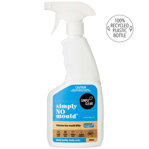 Simply NO Mould is the healthy alternative to harsh chlorine-based mould sprays. The active ingredient, hydrogen peroxide, uses the power of oxygen to kill mould and fully biodegrades to just water and oxygen, leaving no harmful residue.